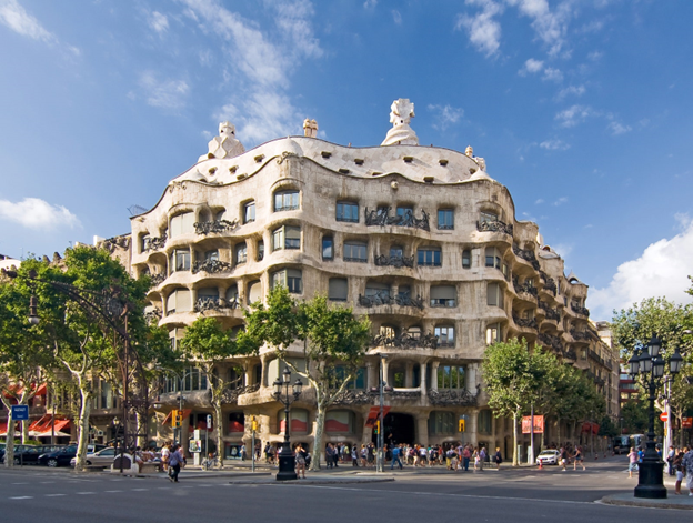 Ngôi nhà cuối cùng mà Gaudí từng thiết kế, cấu trúc này mang lại biệt danh La Pedrera (tên một mỏ đá) vì mặt tiền bằng đá vôi độc đáo của nó