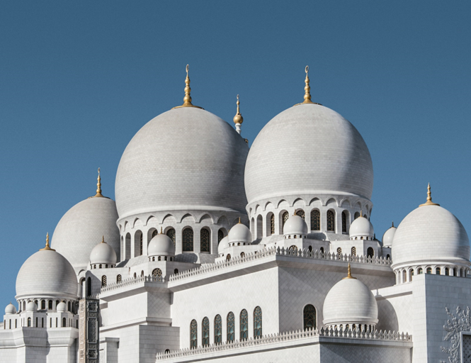 Kết hợp giữa kiến trúc Moorish, Ả Rập và Mughal, Sheikh Zayed là nhà thờ Hồi giáo lớn nhất ở Các Tiểu vương quốc Ả Rập Thống nhất. Bên ngoài bằng đá cẩm thạch trắng sáng tinh khiết của nó kết hợp với bên trong bằng đá cẩm thạch trắng nhạt ấm hơn, nơi chứa tấm thảm lớn nhất thế giới.