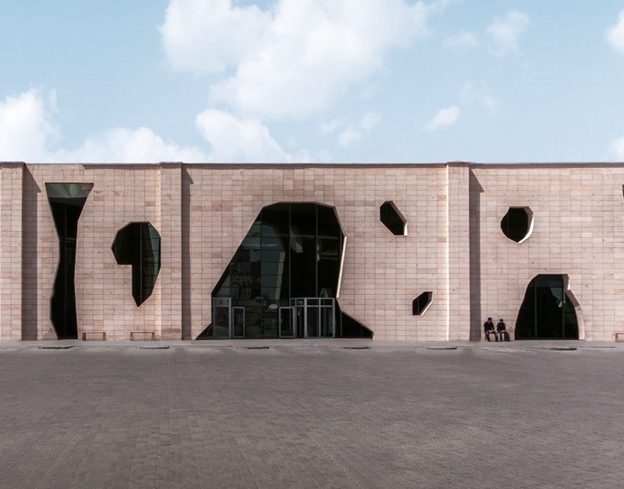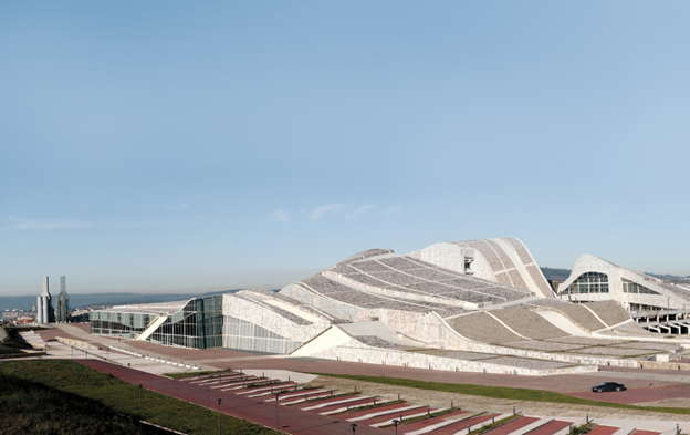 Thiết kế của tòa nhà được lấy cảm hứng từ quy hoạch đường phố thời trung cổ của Santiago, Tây Ban Nha và gợi lên hình ảnh của những ngọn đồi trập trùng, khiến nó hòa vào cảnh quan xung quanh.