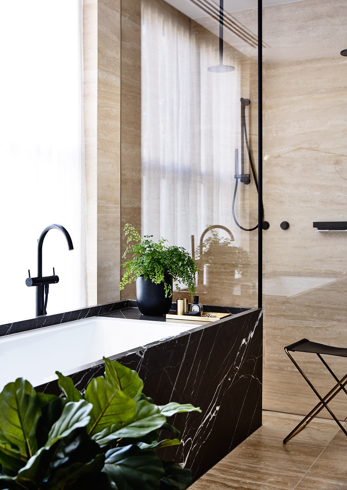 Bồn tắm trong nhà và cây trồng trong nhà là sự kết hợp giữa thiên đường. Lấy ví dụ, không gian đá marble và travertine sang trọng nhưng tinh tế này thuộc về nhà xây dựng Bear Agushi.