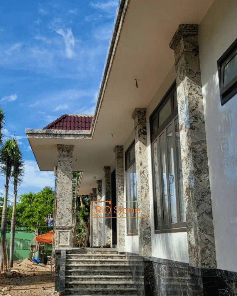 Đá ốp mặt tiền: Với ưu điểm chống thấm nước tốt, khả năng chịu được tác động của thời tiết, không bị mài mòn, không nhạt màu, màu sắc đa dạng & bắt mắt, đá granite là lựa chọn tối ưu để lựa chọn thi công ốp mặt tiền của tất cả các công trình.