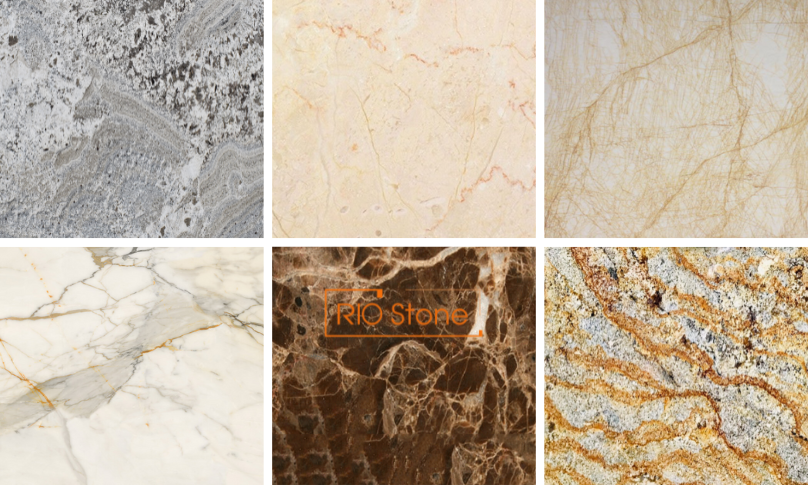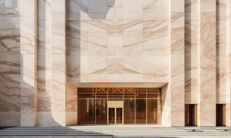 Đá hoa cương – granite và đá cẩm thạch – marble gần như được ưu tiên hàng đầu trong danh mục sản phẩm đá ốp mặt tiền. Độ cứng cao, chống chịu mài mòn tốt, kích thước lớn, đa dạng màu sắc và hoa văn, ngân sách linh hoạt… được xem là những yếu tố hàng đầu khi khách hàng lựa chọn loại đá này cho thiết kế mặt tiền của công trinh. Những loại đá tiêu biểu cho dòng sản phẩm này được kể đến như đá marble trắng Carrara, đá trắng vân mây Volakas, đá marble kem vân mây Rosa light, đá granite dòng cao cấp như Solarious, Nacarado…